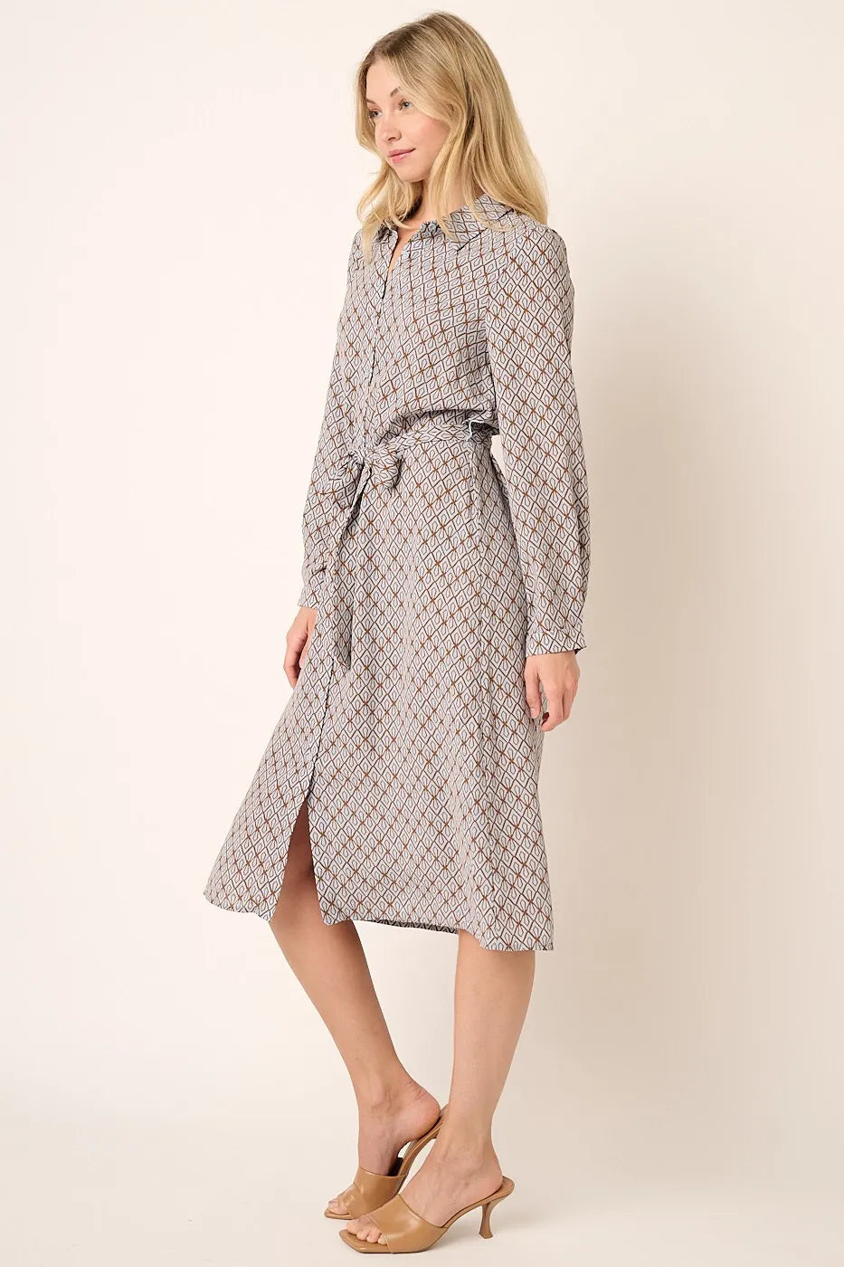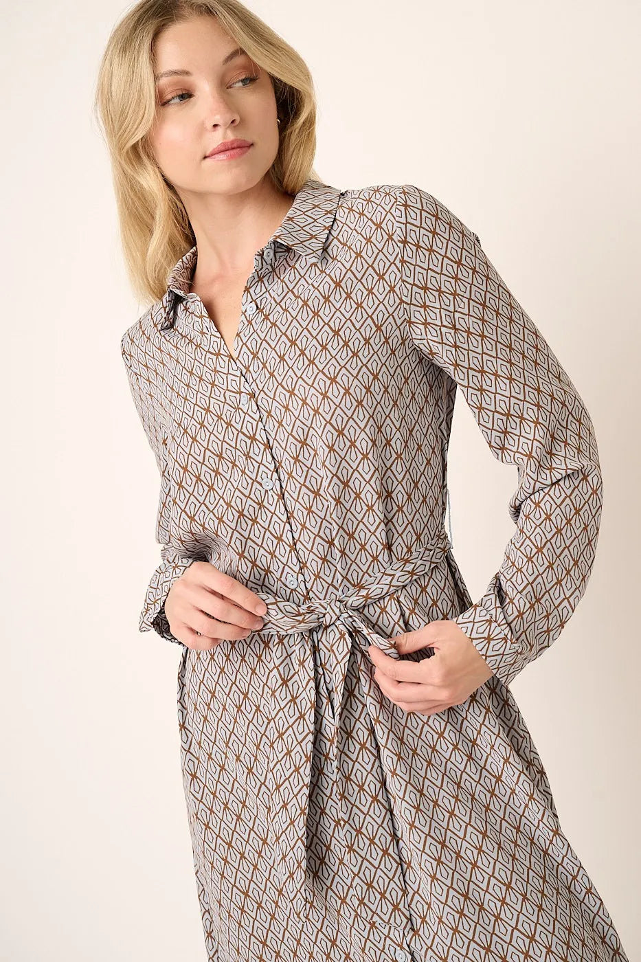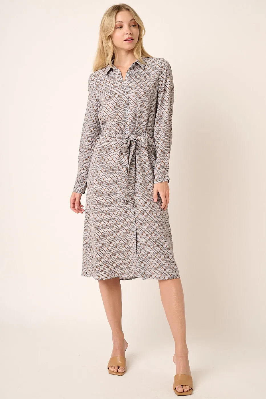 Mittoshop Abstract Print Waist Tie Midi Shirt Dress