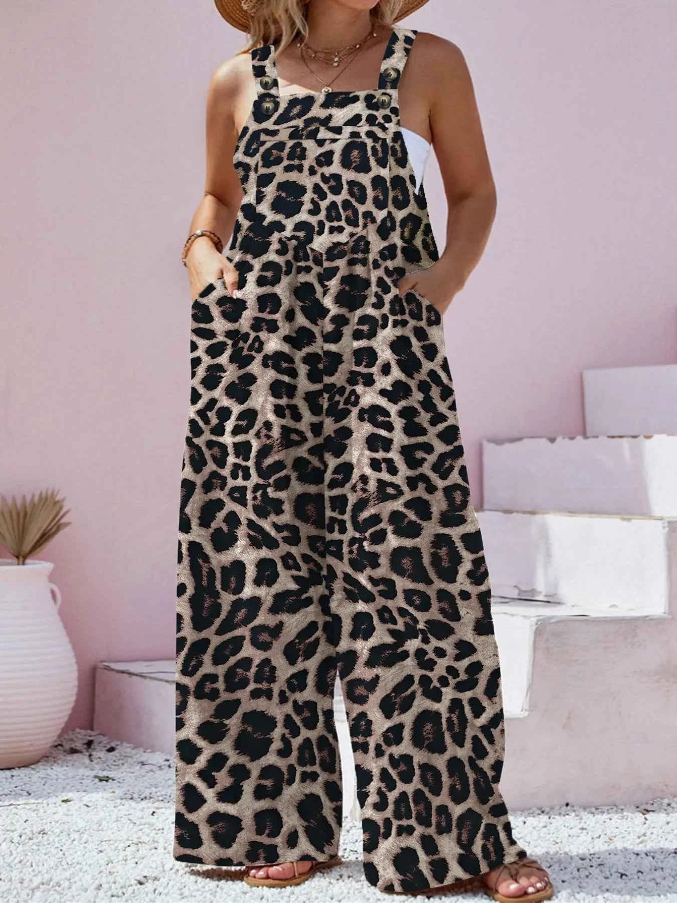 Plus Size Leopard Print Wide Leg Casual Overalls