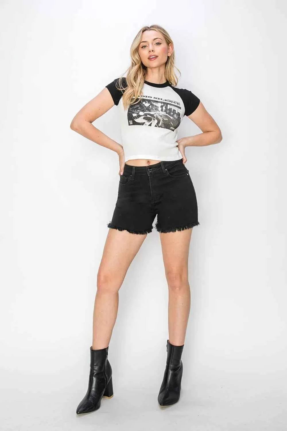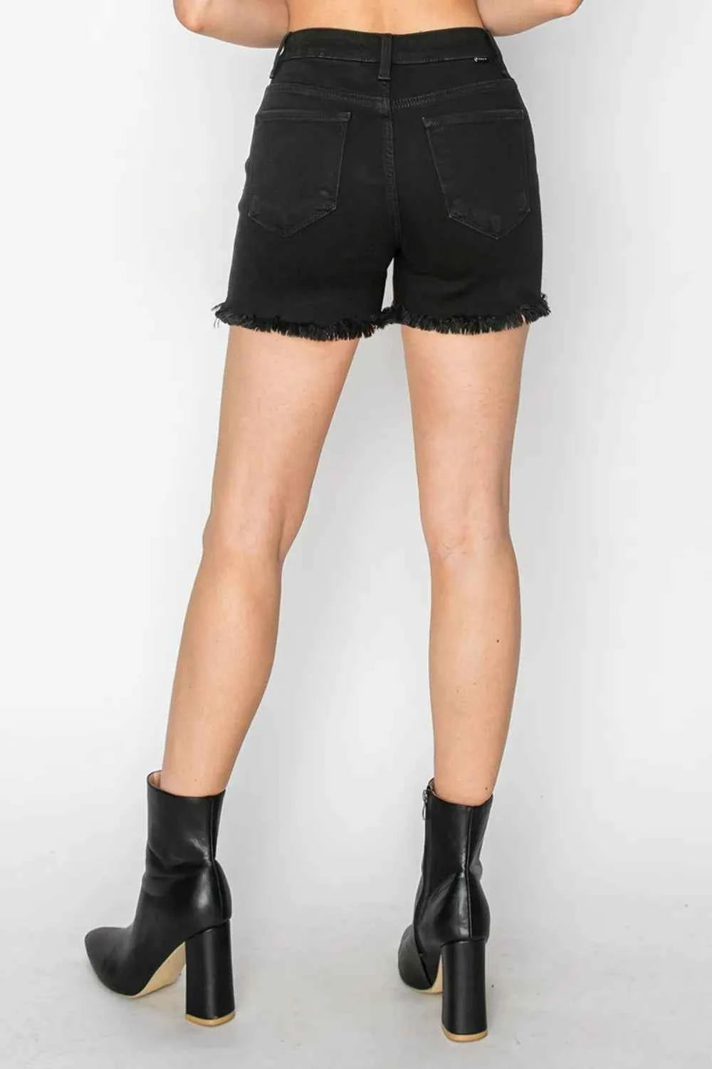 RISEN Full Size High Waist Raw Hem Denim Shorts