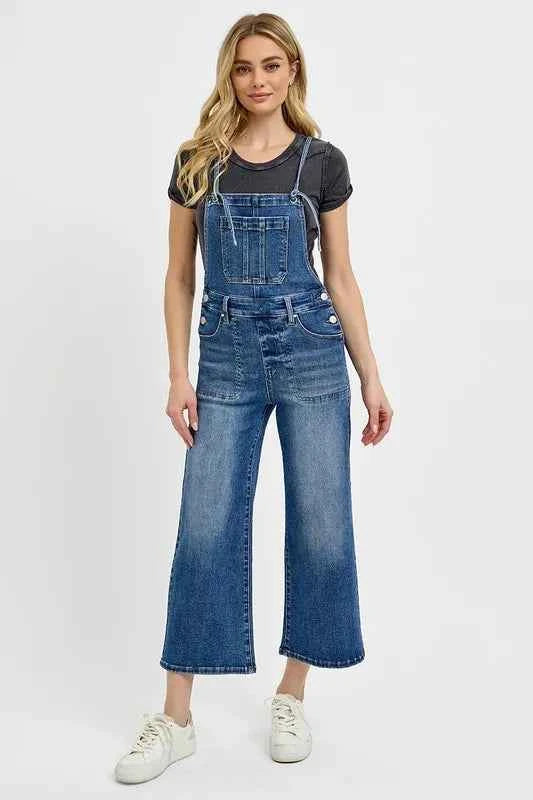 RISEN Full Size Knotted Strap Denim Overalls with Pockets Plus Size