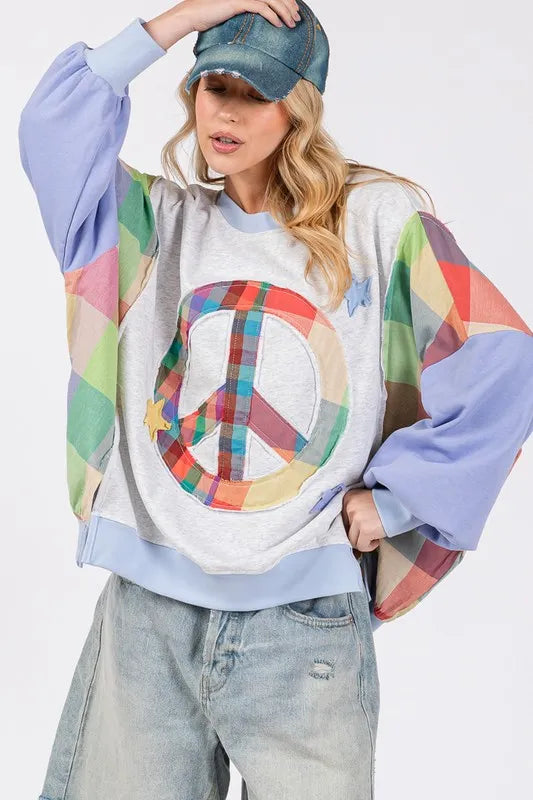 SAGE + FIG Contrast Peace Patch Dropped Shoulder Sweatshirt