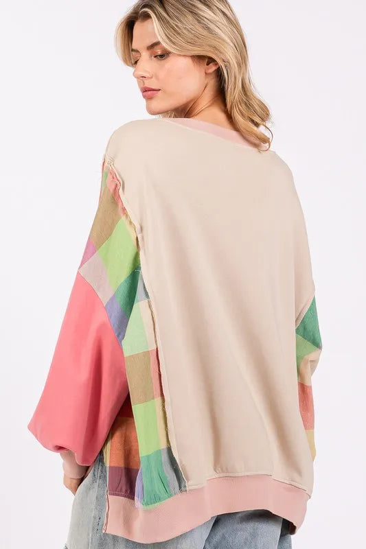 SAGE + FIG Full Size Contrast Peace Patch Dropped Shoulder Sweatshirt