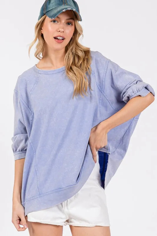 SAGE + FIG Mineral Washed Side Slit Round Neck Sweatshirt
