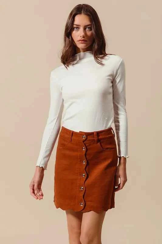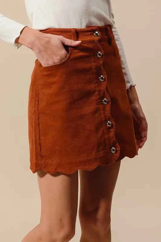 SO ME Scallop Buttoned Front Corduroy Mini Skirt