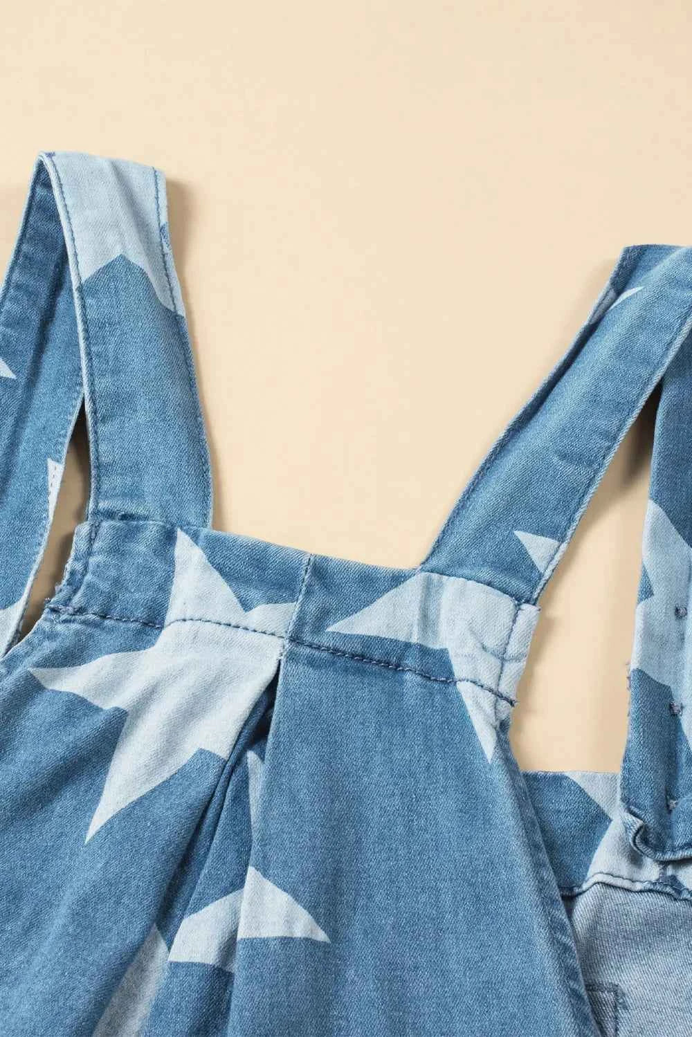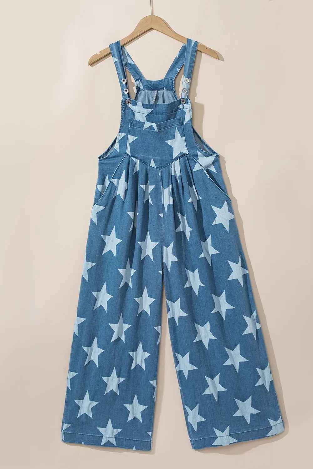 Star Print Buttoned Strap Wide Leg Denim Overalls