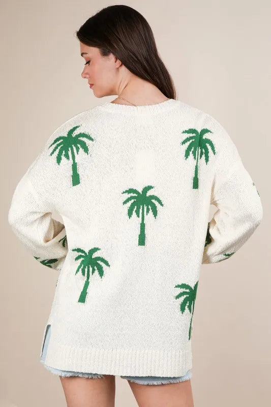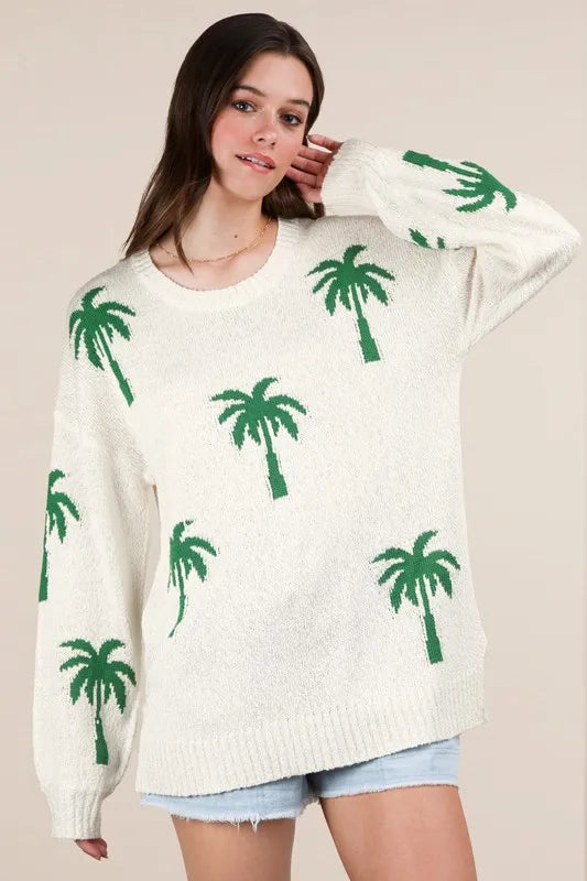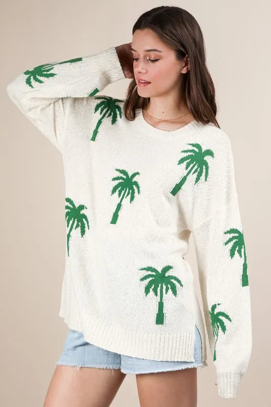 VERY J Palm Tree Graphic Oversized Knit Sweater