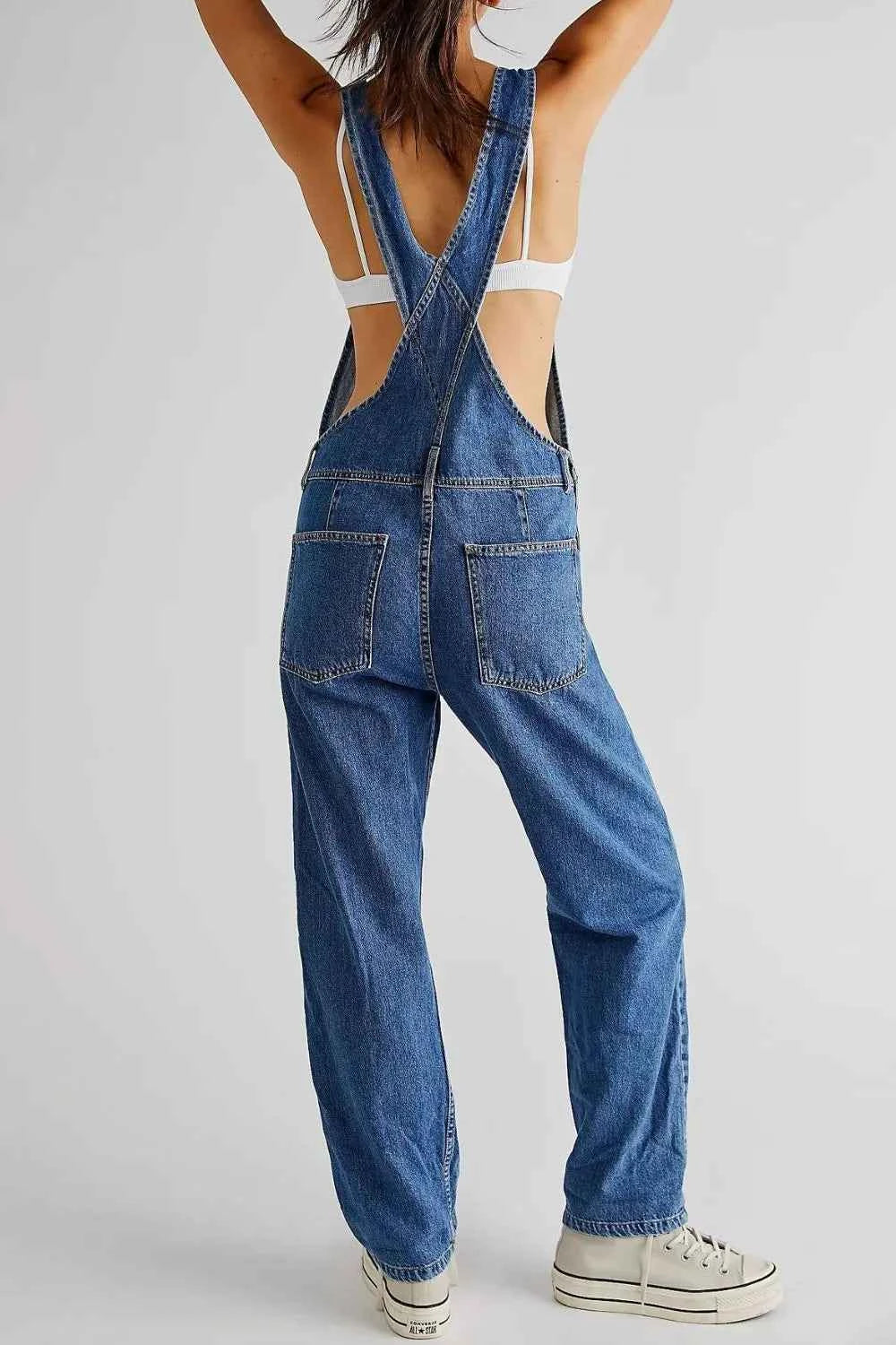Wide Strap Square Neck Denim Overalls