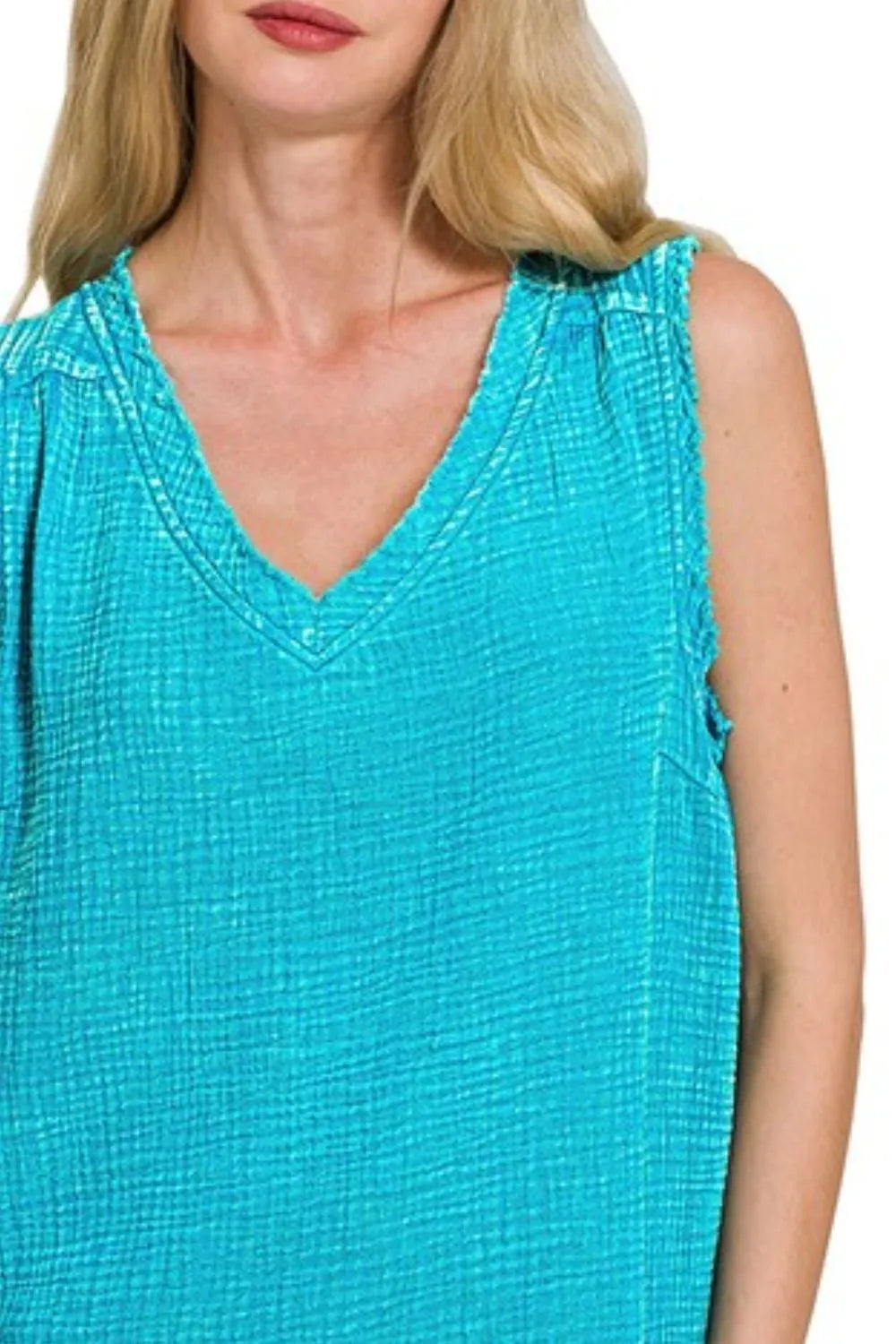 Zenana Double Gauze Raw Edge Acid Washed Tank
