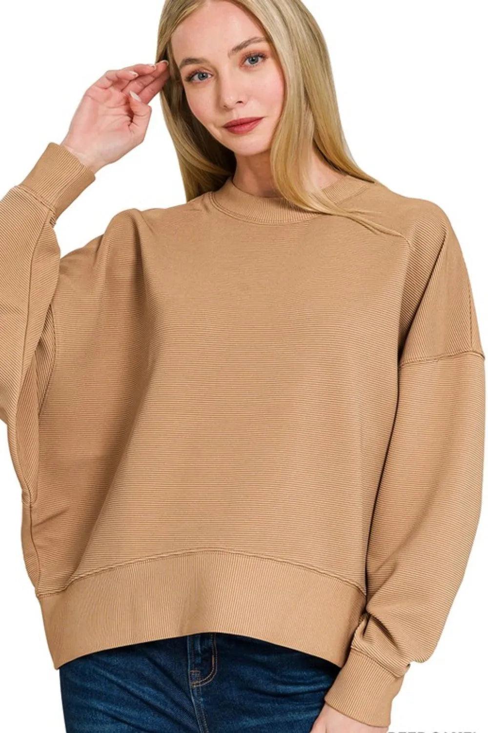 Zenana Ribbed Balloon Sleeve Sweatshirt
